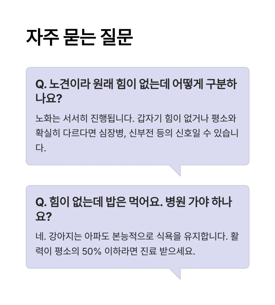 Q1. 노견이라 원래 힘이 없는데, 어떻게 구분하나요?