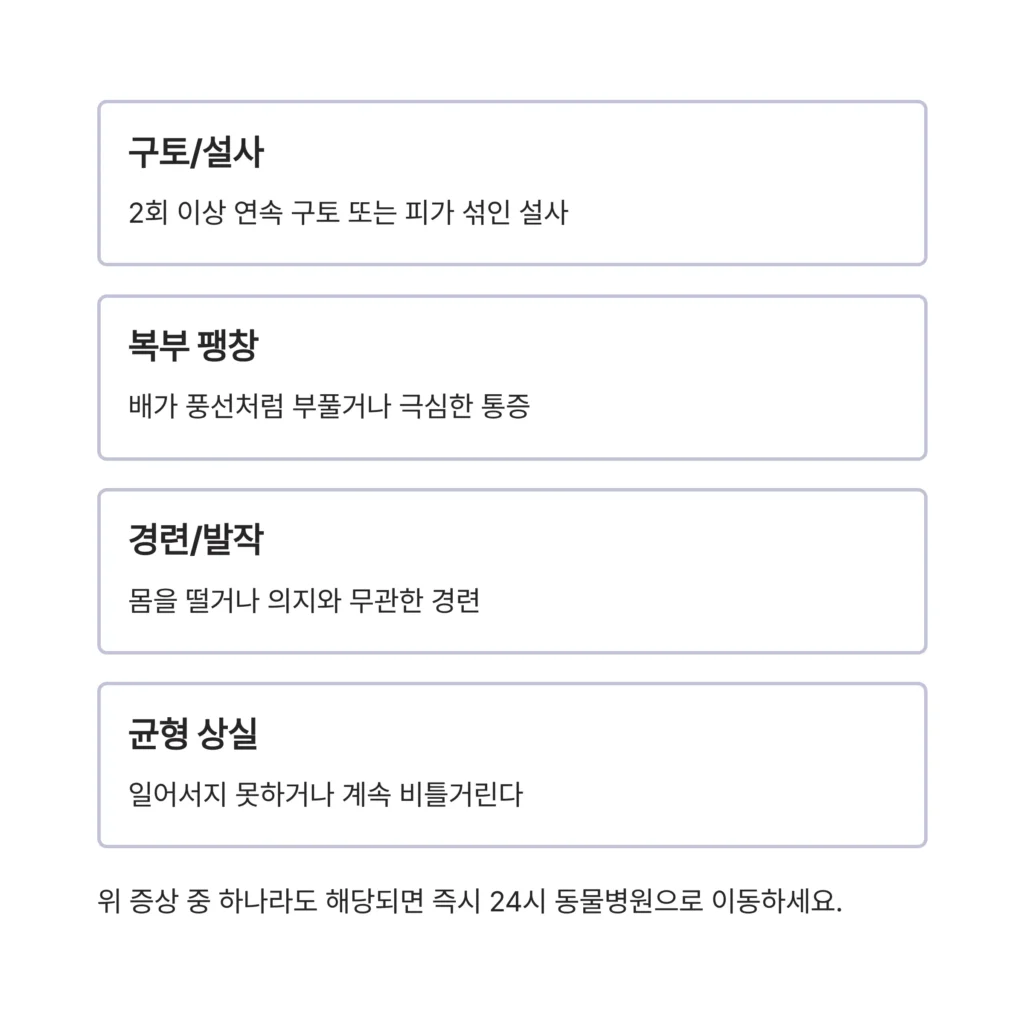 그 불안한 마음을 누구보다 잘 압니다. 지금부터 당장 병원에 가야 하는 ‘위험 신호’가 무엇인지, 보호자로서 무엇을 확인해야 하는지 명확한 판단 기준을 드리겠습니다.