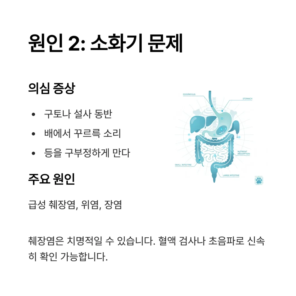 • 다음 행동: 췌장염 등은 치명적일 수 있습니다. 병원에서 ‘간단한 혈액 검사 키트(cPL)’나 ‘초음파 검사’를 통해 소화기 문제를 신속하게 확인할 수 있습니다.