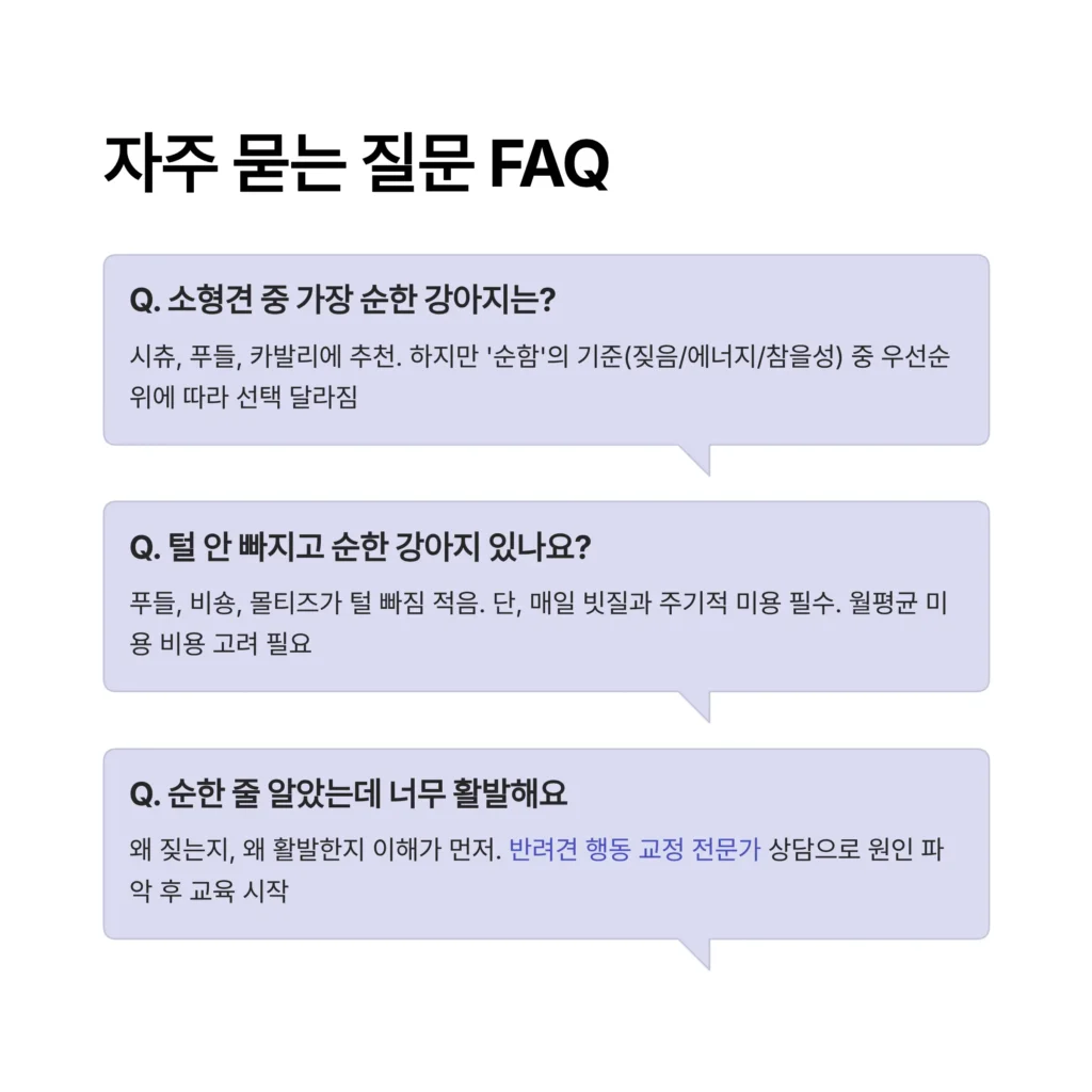 Q1: 소형견 중에 가장 순한 강아지는 누구인가요?