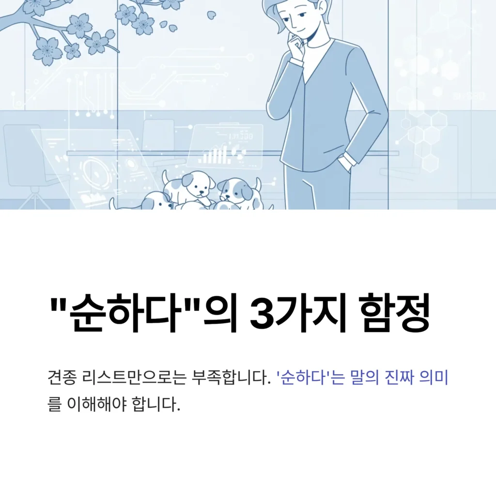 하지만 만약 단순히 견종 이름만 보고 15년을 함께할 가족을 결정하려 한다면, 이 글을 3분만 집중해서 읽어보세요. 당신의 상황(1인 가구인지, 아이가 있는지)에 100% 맞는 ‘진짜 순한 반려견’을 찾는 실패 없는 기준을 A부터 Z까지 알려드리겠습니다.