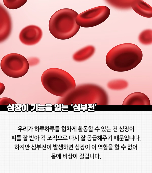 심부전은 심장 기능이 저하되어 발생합니다. 심장은 혈액을 몸 전체로 순환시켜 기관과 세포에 산소와 영양소를 공급합니다. 그러나 심부전은 이러한 기능을 제대로 수행하지 못하기 때문에 발생합니다. 이로 인해 혈액 순환량이 감소하고, 각 기관과 세포에 필요한 산소와 영양소를 공급하지 못하게 됩니다. 따라서, 예방과 초기 진단은 매우 중요합니다. 이를 위해서는 식습관 개선, 적절한 운동, 흡연과 음주를 줄이는 것과 같은 건강한 라이프스타일이 필요합니다. 또한, 간단한 건강검진을 통해 심부전의 초기 증상을 감지할 수 있습니다.